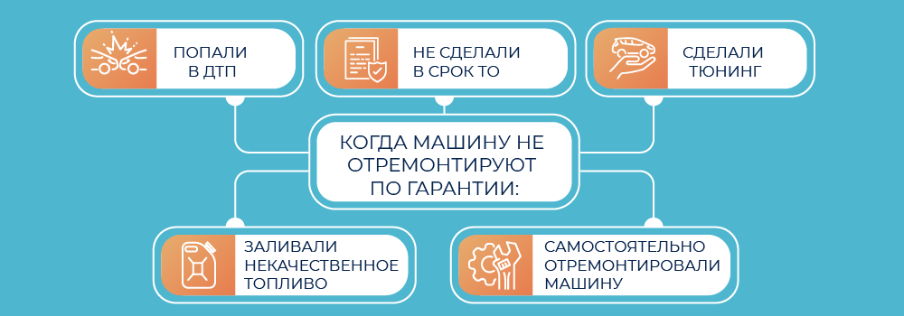 Гарантии можно лишиться, если вы решили отремонтировать машину сами, а потом что-то сломалось, или после тюнинга. Еще одна из частых причин отказа – использование некачественного топлива. Но часто это просто уловка, говорит Галина Гамбург, руководитель практики имущественных и обязательственных отношений Национальная Юридическая Служба АМУЛЕКС Национальная Юридическая Служба АМУЛЕКС Федеральный рейтинг. × . Эксперт рассказывает, что у нее в практике был такой случай. Водителю отказали в гарантийном ремонте, потому что он якобы использовал плохой бензин. Доказать, что причина дефекта не связана с топливом, удалось только на втором круге дела, проведя повторную экспертизу. Вячеслав Балдин, адвокат АБ Адвокатское бюро Asterisk Адвокатское бюро Asterisk Федеральный рейтинг. группа Арбитражное судопроизводство (крупные коммерческие споры — high market) группа Банкротство (споры mid market) группа ГЧП/Инфраструктурные проекты группа Разрешение споров в судах общей юрисдикции группа Корпоративное право/Слияния и поглощения (mid market) 21 место По выручке × , резюмирует, что если качество топлива, тюнинг или авария не повлияли на производственный недостаток, то дилер (продавец) обязан произвести гарантийный ремонт.